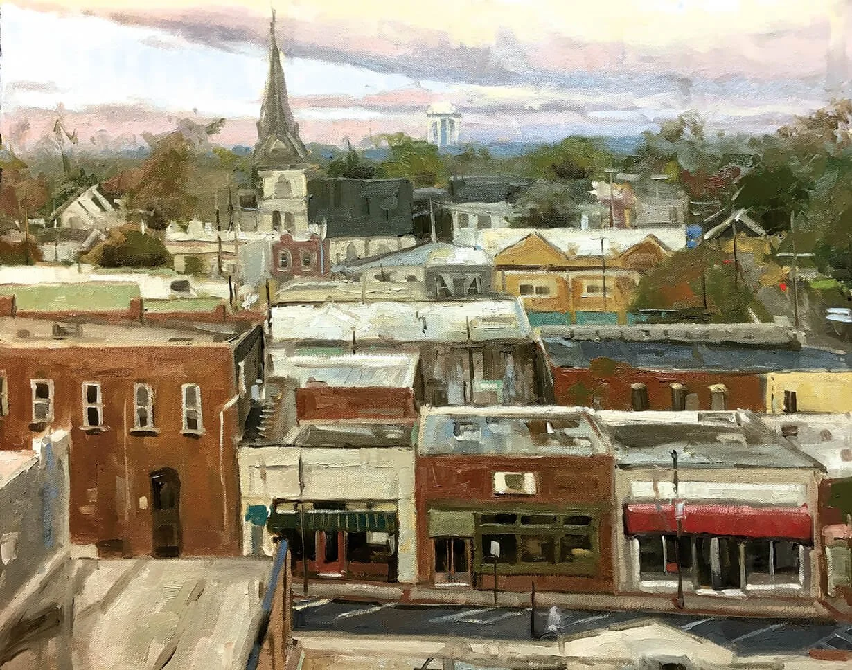 David Boyd Jr., at work in his studio, was named Best Visual Artist, and his Boyd Gallery was named Best Art Gallery/Studio, in Newnan-Coweta Magazine's 2024 Best of Coweta Readers' Choice Awards contest. Here, Boyd puts the finishing touches on his painting, "Daybreak on Madison."