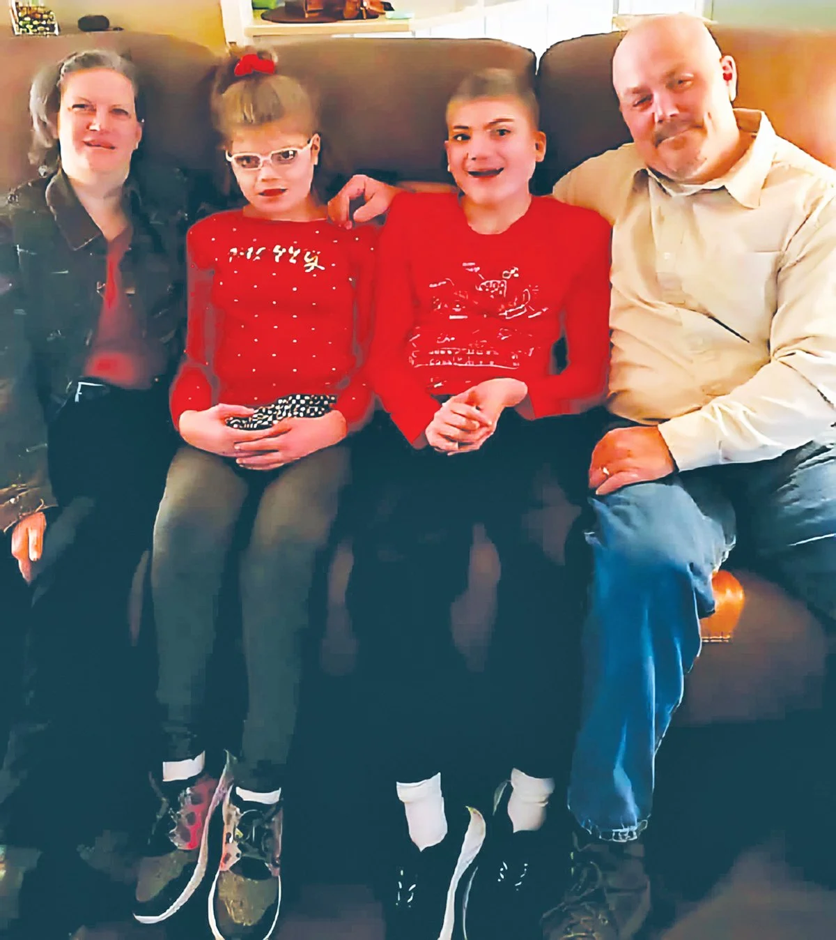 Jason and Jennifer Tuttle relax at home with their children‚ Samantha and Zachary.